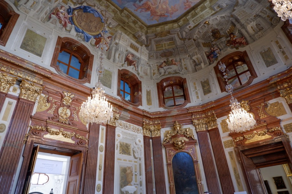 Dobrą stroną wizyty we wnętrzu tego pałacu, było jednak to, że przy okazji mogliśmy zobaczyć odbywająca się tam wystawę obrazów Gustava Klimta — to było dla nas jakieś pocieszenie!