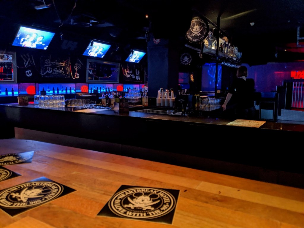 Gdy zeszliśmy do tych piekielnych czeluści, okazało się, że oprócz tych młodych ludzi, którzy tak usilnie starali się wejść do tego miejsca, oprócz barmanki i może ze dwóch innych młodych, nie było jeszcze tutaj nikogo.