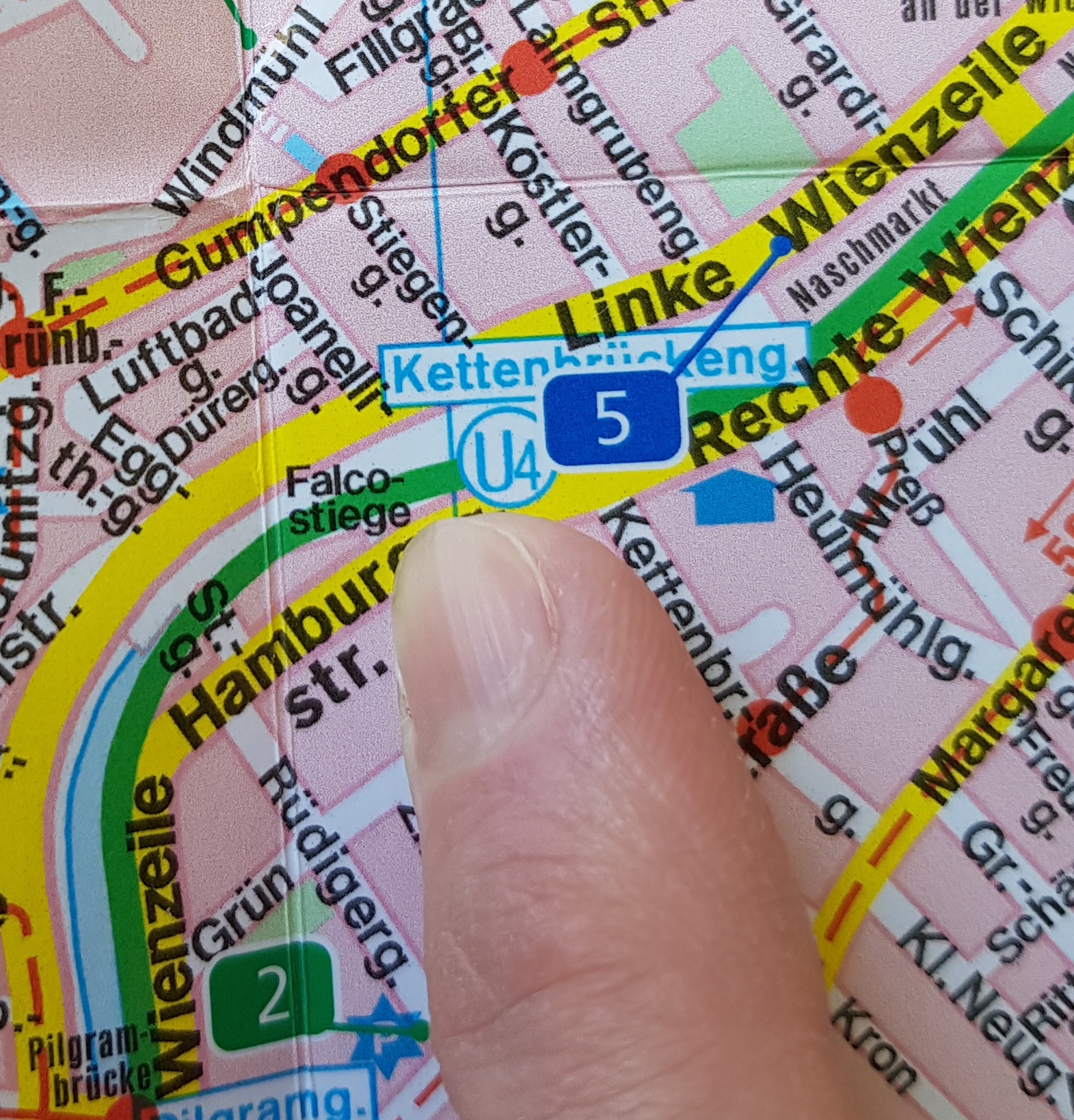 To miejsce na mapie wpadło mi pod palec, ponieważ był to punkt, wokół którego każdego dnia krążył mój wzrok, gdyż nasz hotel znajdował się właśnie przy ulicy Linke Wienzeile.