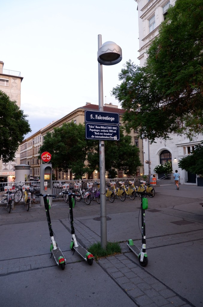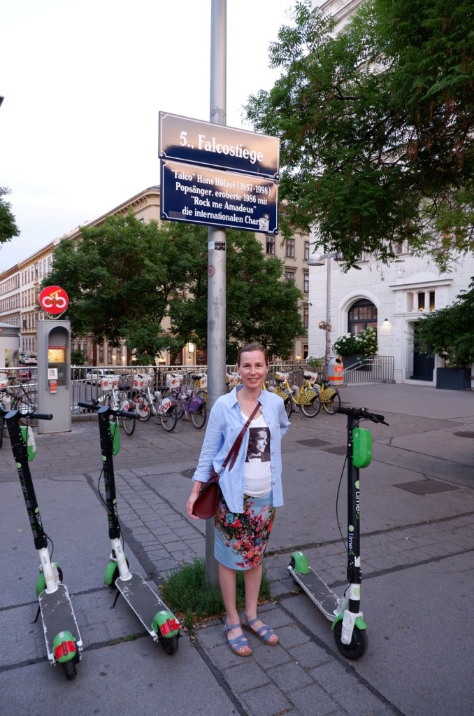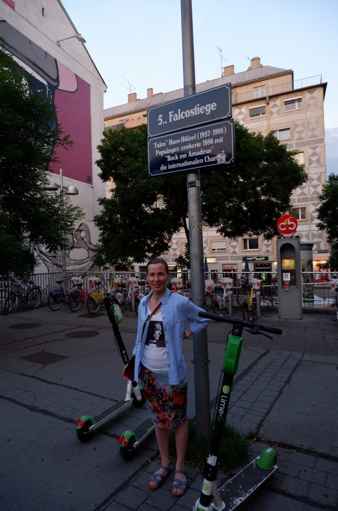 I tak mimochodem wśród mnogości innych ulic, wpadł mi w oko napis „Falco-Stiege” (z niem. „Stiege” – schody). Pomyślałam, że z tego nadmiaru wrażeń mam już chyba jakieś halucynacje, no bo co to u licha mogłoby być?