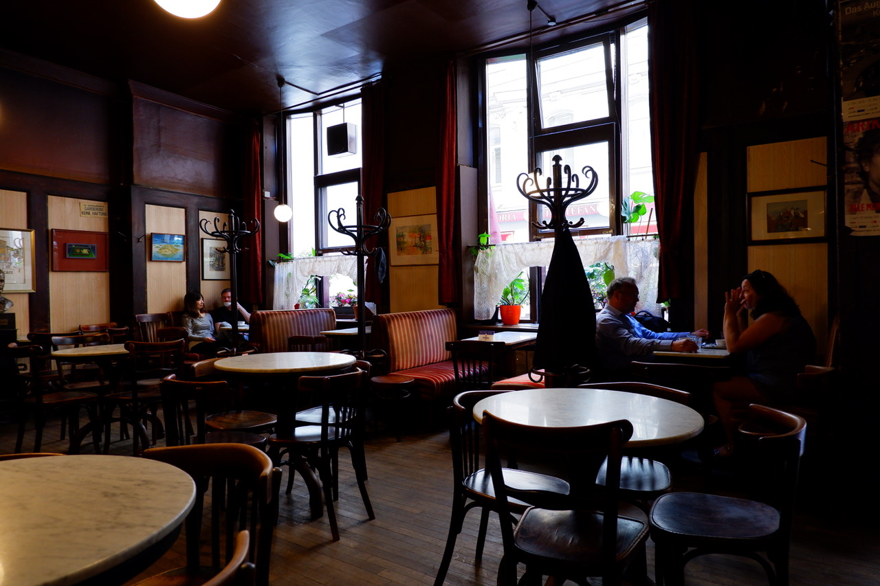 Heute ist das legendäre Café. Viele Künstler haben dieser Ort gewählt, als ein Treffpunkt. Damals war das einen Treffpunkt der künstlerischen Avantgarde, der Dichters und der Schauspieler, die mit dieser Stadt verbunden waren. Sie waren hier: Helmut Qualtinger (der Schauspieler, Dichter, Kabarettist aus Wien), oder Andre Heller (der Schauspieler, Dichter, Poet, Autor, Chansonnier, Kulturmanager, Aktionskünstler aus Wien). Und vielen anderen.