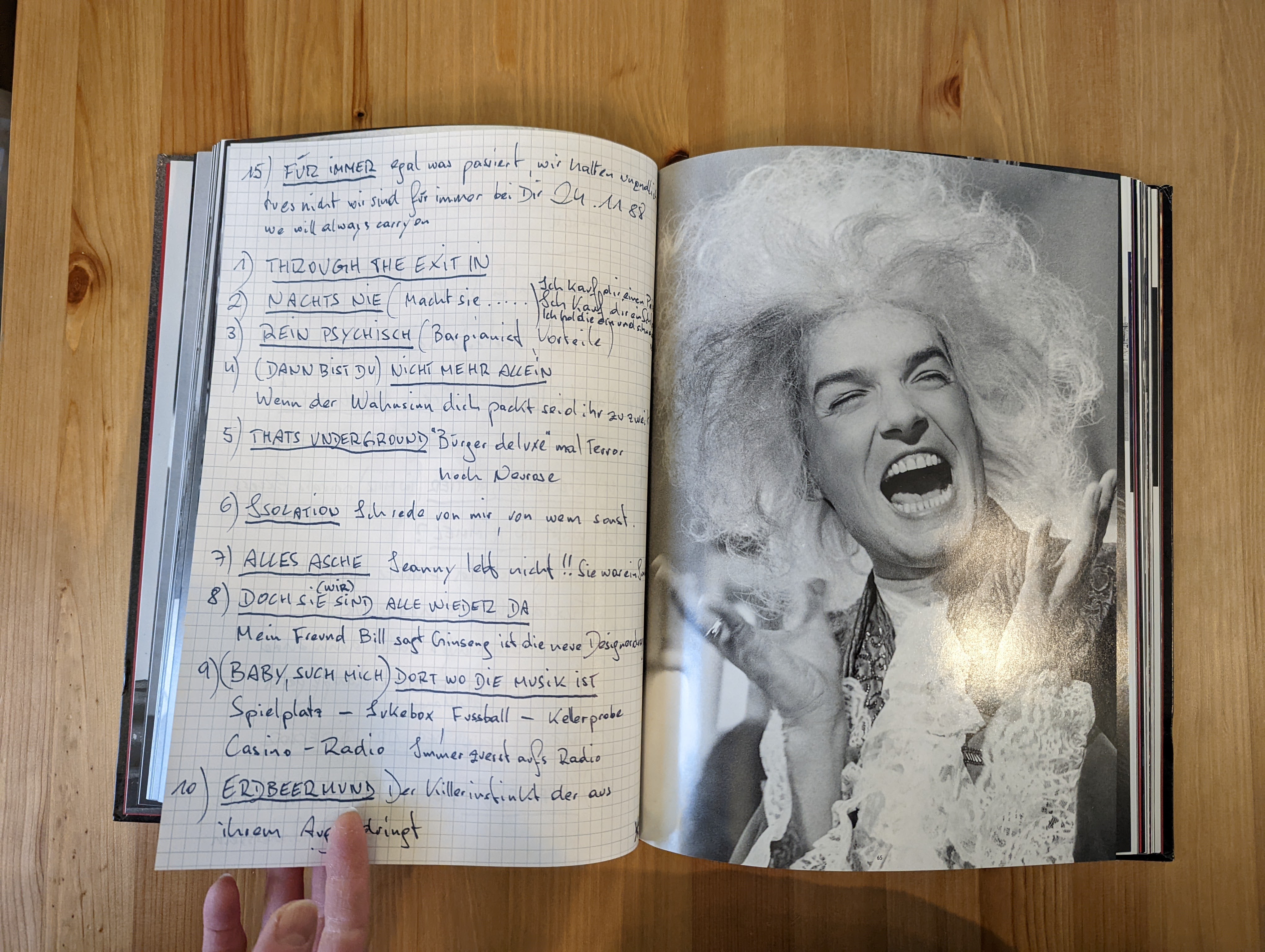 Als ich das Album schließlich in den Händen gehalten habe und darin blättern konnte, ist mir erst aufgefallen, dass diese Seiten mit seinen Handschriften nicht die gedruckten Seiten des Albums sind, sondern eher wie Papierstücke aussehen, die zwischen die Seiten eines Buches eingefügt sind. Einer von ihnen ist sogar kariert.